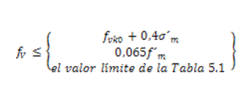 Las tensiones permisibles a cortante de un muro de mampostería simple se obtienen según la expresión: