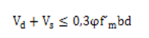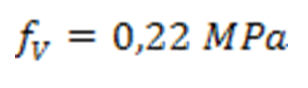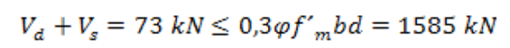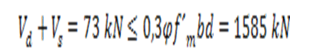 La resistencia característica a cortante de la mampostería compuesta por bloques de 12 MPa f_V=0,304 MPa. Como el valor de V_μ=73 kN es inferior al cortante resistente de la mampostería V_d=158 kN no se requiere refuerzo por cortante. El aporte del acero no se tendrá en cuenta y el espaciamiento del mismo será por especificaciones teniendo en la sección transversal 2 ramas de diámetro ∅6 mm.