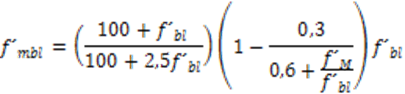 La resistencia a compresión de la mampostería se obtiene mediante la expresión (1) establecida en (NC-774, 2012) que depende de la resistencia a compresión del bloque y del mortero,