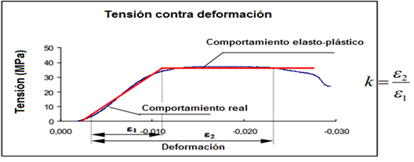 En el gráfico de la Figura 6, se observa que el valor del parámetro k igual a uno (k = 1) equivale a considerar un comportamiento elasto-frágil para la compresión.