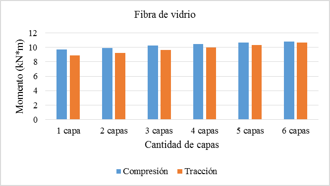 Para que el refuerzo de la viga en su cara traccionada con FRP de vidrio supere el momento actuante de 10,63 kN*m se necesita no menos de 6 capas de fibra, pero poner estas resulta antieconómico.