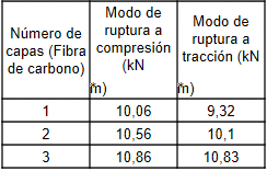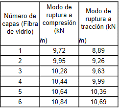 Se utiliza el mismo procedimiento y los mismos diagramas de tensiones que se utilizaron en el cálculo con fibra de vidrio. De modo que se obtienen los valores de momento para cada modo de ruptura.