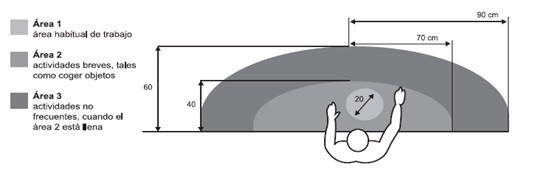 En cualquier superficie de trabajo, es importante tomar en cuenta las áreas de trabajo: habitual, poco frecuente y no frecuente. Figura 2