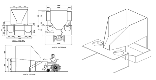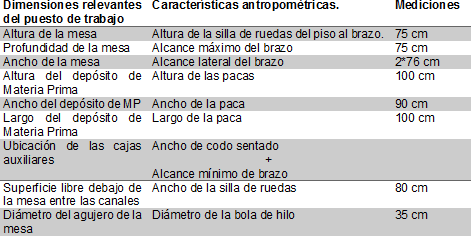 Las medidas fueron tomadas en algunos casos de mediciones directas al trabajador actual del puesto, otras de las recomendaciones propuestas por STPS (2002) [22] sobre el diseño de espacios laborales ergonómicos para personas minusválidas a partir del análisis de las mediciones estándar de las sillas de ruedas propuestas por [30].