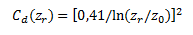 Donde coeficiente de arrastre, longitud de rugosidad, altura de referencia (10 m).
