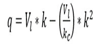 La relación entre la tasa de flujo y densidad se obtiene despejando la ecuación 4 en la ecuación fundamental del flujo vehicular, obteniéndose la ecuación 2.