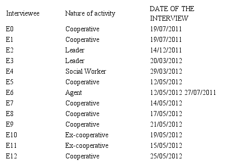 In the end, we held eighteen (18) open interviews according Haguette (1990) and Triviños ( 1994) in 11 months. We also visited some of the cooperative screening units and, on some occasions, we observed the behaviour of group members. A documentary search allowed of raising historical, political, social and economic data related to the constitution of COOPEROCHA.