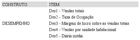 No Quadro 2, é possível observar a relação de itens pertencentes ao questionário, utilizados para a mensuração do desempenho.