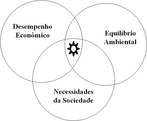 Elkington (1999) propôs uma abrangência maior para a ideia de sustentabilidade, integrando à dimensão ambiental as dimensões econômica e social, expandindo este conceito em direção ao enfoque triple bottom line (TBL), ou “tripé da sustentabilidade”, cuja aceitação e popularidade têm o incentivo de uma gama de iniciativas e diretrizes legais e voluntárias (MILNE; GRAY, 2013); o equilíbrio nas três dimensões está ilustrado na Figura 1.