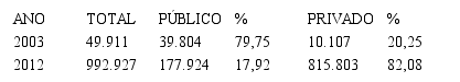 Diversas podem ser as estratégias adotadas pelas IES privadas, com destaque para a EaD que, segundo Speller, Robl e Meneghel (2012), ampliaram o número de vagas ofertadas. Para fazer frente às mudanças ambientais, esta oferta não aconteceu apenas em número, mas em conteúdo, como no aperfeiçoamento dos currículos que se tornaram mais abertos e flexíveis (BARONE, 2012). As exigências ambientais demandaram novas estratégias das IES privadas que se mostram muito positivas, visto os números relativos às matriculas no EAD no período de 2003 a 2012, observados na tabela 3.