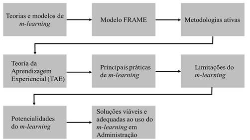 Assim, este estudo tem por objetivo propor a elaboração de um protocolo que possa usar o m-learning como suporte ao processo de ensino-aprendizagem em cursos de graduação de administração. Aplicando o Modelo para Análise Racional de Educação Móvel (FRAME), proposto por Koole (2009), e com base na Teoria da Aprendizagem Experiencial de Kolb (1976), é proposto um protocolo para a elaboração de estratégias e atividades de m-learning com 62 estudantes de graduação em Administração. Diferentes potencialidades do m-learning e dinâmicas de aprendizagem experiencial foram exploradas durante a aplicação empírica do artefato.