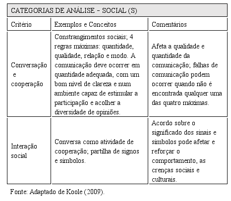 O Aspecto Social leva em conta os processos de interação social e de cooperação (quadro 3). Regras de cooperação são determinadas pela cultura do aluno ou pela cultura em que a interação acontece. No m-learning, essa cultura pode ser física ou virtual.
