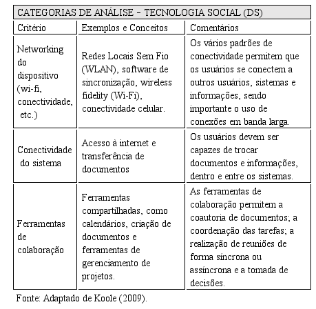 A Interseção Tecnologia Social descreve como os dispositivos móveis permitem a comunicação e a colaboração entre várias pessoas e sistemas (quadro 5). Praticantes do m-learning devem considerar o fornecimento de repositórios digitais ou ambientes virtuais que auxiliem os alunos a se comunicar, embora estejam fisicamente e temporalmente separados.