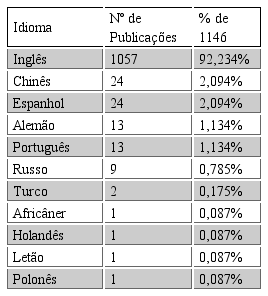 Publicações por idioma