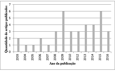A partir da bibliometria realizada nas bases de dados citadas, foram selecionados 39 artigos publicados em 18 periódicos distintos, sendo a publicação mais antiga datada de 2003 e a mais atual em dezembro de 2016. Por meio da análise dos resultados, foi possível afirmar que essa temática ainda não é muito consolidada e utilizada nas Ciências Sociais Aplicadas, tendo em vista a baixa produtividade e as publicações relativamente recentes na área.
