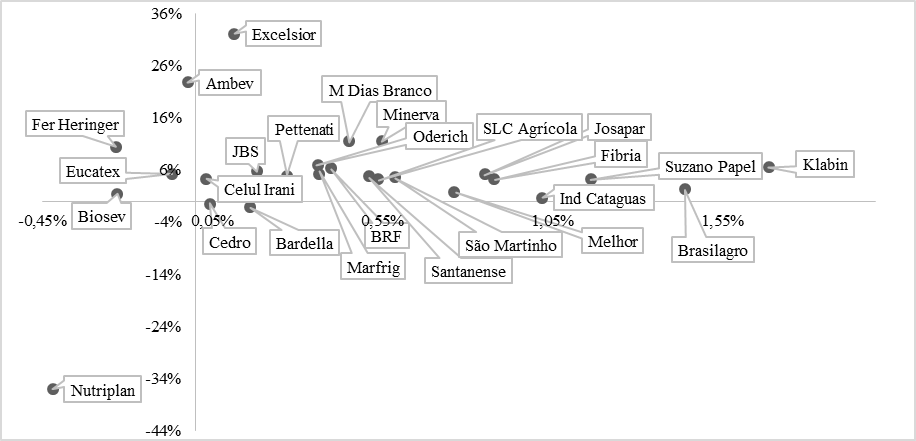 A análise tem como referência as empresas listadas na Bolsa de Valores de São Paulo, integrantes do segmento do agronegócio.