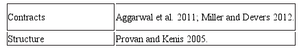 With regard to its formal structure, collaborative governance is composed of contracts and the definition of its coordination structure. Table 4 shows the authors who study this issue.