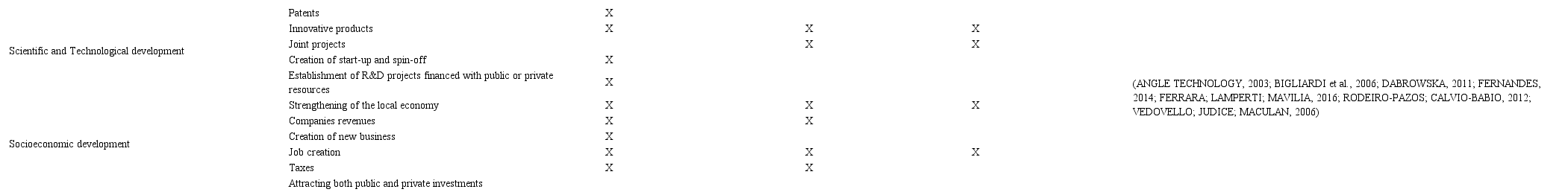 According to the analysis of the interviews and considering the literature review, it can be said that the main results of a science park are concentrated in two main categories of performance: scientific and technological development and socio-economic development, as shown in Table 4. On the first, it can be seen aspects related to innovations in products and services and the creation of new businesses and technology-based companies through applied research. On the second, there are indicators such as job creation, taxes, and income linked to the development and performance of the business from the park.