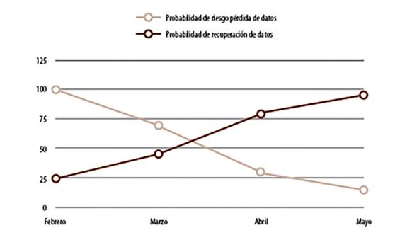 La probabilidad de riesgo de pérdida de datos y de recuperación de datos mejoró después de la implementación de la mejora, esto se muestra en la Figura 3: