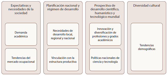 Los problemas y tensiones del objeto de estudio se articulan a la demanda de la sociedad, la planificación nacional, la prospectiva de desarrollo científico, humanístico y tecnológico así como a la diversidad cultural, aspectos establecidos en el principio de pertinencia en la LOES (Asamblea Nacional, 2010) que textualmente indica: