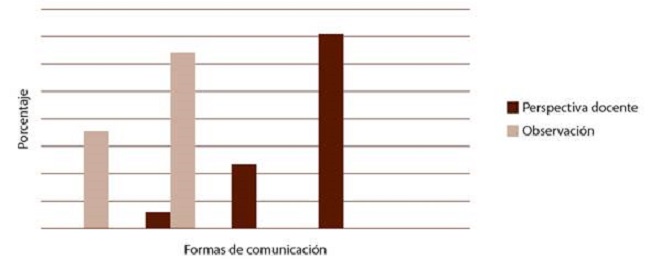 En este caso tenemos valoraciones porcentuales muy semejantes: 71 % y 65 %, pero posturas diferentes, los docentes y las docentes aducen utilizar en clase un lenguaje científico claro y preciso, establecer espacios para que se dé una comunicación fluida estudiante-docente y docente-estudiante, y realizar intervenciones utilizando argumentaciones científicas; sin embargo, en el desarrollo de las lecciones se observó que el lenguaje utilizado era muy coloquial, en aquellos momentos donde se dio intervención docente, dado que una parte se queda en el escritorio realizando diferentes actividades (computadora), dejando de lado su rol mediador del conocimiento científico.