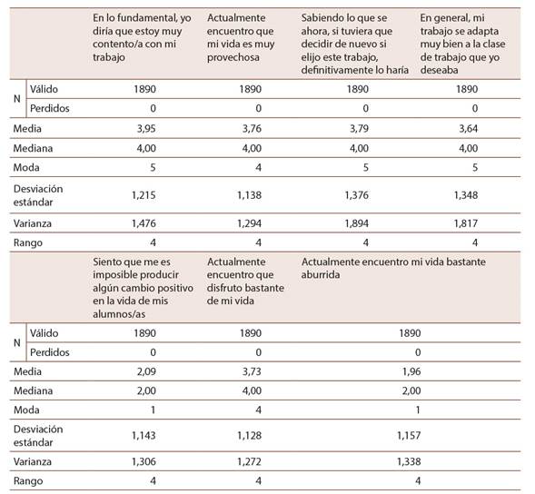 Esta subescala tiene puntuaciones bastante significativas. En este sentido, las mayores puntuaciones medias obtenidas en la subescala “falta de realización”, corresponden a los ítems 1 y 3; el primero guarda relación con la satisfacción en el trabajo; el segundo, con la elección y desempeño de la profesión docente, donde se aprecia mucha satisfacción docente acerca de sus respectivos trabajos y vocación, muy en la línea de trabajos y estudios similares.