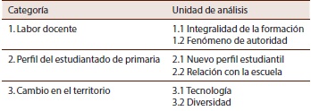 Las categorías de análisis que surgen de las entrevistas a los sujetos (Tabla 1) dan origen a los siguientes resultados.