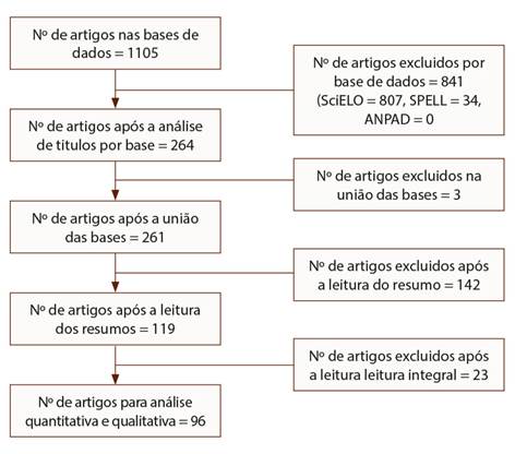 Para essa revisão bibliográfica crítica com rigor metodológico, agrupando elementos metodológicos de uma revisão sistemática4 com aqueles de uma revisão crítica de literatura, foram consultadas as seguintes bases de dados eletrônicos: Scientific Eletronic Library (SciELO), Scientific Periodicals Electronic Library (SPELL) e base de dados da Associação Nacional de Pós-graduação e Pesquisa em Administração (ANPAD). As bases de dados foram escolhidas devido à gratuidade e à disponibilidade de acesso no ambiente universitário, assim como devido à presença de publicações nacionais e internacionais, conjugando temáticas interdisciplinares da Administração e Educação. A escolha pela base de dados ANPAD foi considerada pelas autoras uma vez que apresenta muitas vezes trabalhos ainda em desenvolvimento na academia, o que poderia permitir uma visão para que direção o tema viria a ser estudado no Brasil.