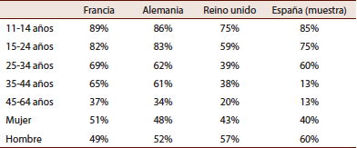 Los estratos de la muestra se han definido atendiendo a la revisión bibliográfica en distintos países como son Francia, Alemania y Reino Unido así la muestra queda distribuida en España en las proporciones expuestas en la Tabla 1.