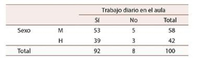 Al cruzar los datos de esta pregunta dicotómica con algunas de las variables sociodemográficas iniciales, se obtienen resultados que muestran la no existencia de diferencias significativas en cuanto al trabajo cotidiano de la IE y el sexo de la persona que imparte clase (Tabla 3). Lo mismo sucede con el resto de las variables, es decir, edad, especialidad y nivel educativo.