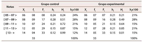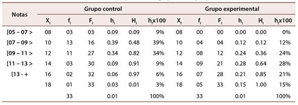Análise dos resultados.: Os resultados obtidos nos permitiram determinar que a maioria dos estudantes do grupo experimental desenvolveu suas capacidades intelectuais, explorou seus conhecimentos e, finalmente, alcançou competências e habilidades a um nível bom e significativo.