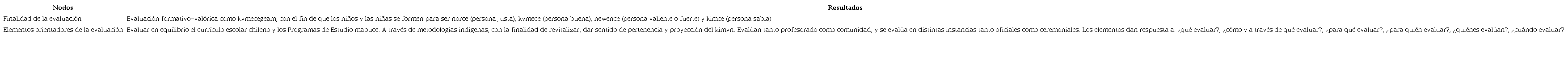 Evaluar para ser norce, kumece, newence y kimce, esto quiere decir que la evaluación tiene un sentido de formación de la persona, no solo interesándose por la adquisición de conocimientos del currículo oficial, sino como parte del proceso formativo de los niños y las niñas, para que sean buenas personas, solidarias. Una profesora dice al respecto: