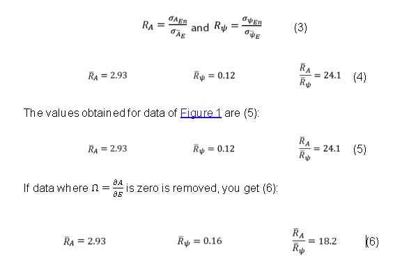 The relationship between the value of 𝜎 𝐴 𝐸𝑛 and that of 𝜎 𝐴 𝐸 (or 𝜎 𝜓 𝐸𝑛 and 𝜎 𝜓 𝐸 ) is an indicator of the relative variability of data. A relative variability that tends to zero indicates that the fluctuation between measures are negligible with respect to the measurement itself. Variability greater than one indicates that the variations in measurements are smaller than the variability of data, which renders information useless because it cannot be distinguished from noise. Therefore (Figure 2, 3, 4, 5, 6):