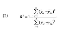 Donde n es el número de observaciones, yic es el i-ésimo valor calculado, yim es el i ésimo valor medido, finalmente ym es el valor medio de los valores calculados.