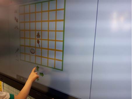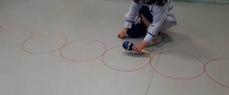 El segundo bloque de actividades, y como indica la Figura 2, ha contribuido al desarrollo del control de los procesos, el lenguaje de los comandos en situaciones de aprendizaje de aula. En este aspecto, antes de realizar la propuesta establecida con las flechas de comandos, el niño o niña ha tenido que anticipar el proceso de ejecución de la secuencia propuesta del mismo modo que sucede cuando se da respuesta a la resolución de un problema en el aula ( primero: dar un paso al frente, segundo: otro paso al frente , tercero: recoger el instrumento , cuarto: paso hacia atrás, quinto: salir del aro).