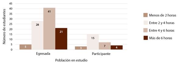 Como se observa (ver Figura 4) en los egresados consideran en un 65,3% que se necesitan más de 4 horas fuera del horario regular de clases para poder cumplir con las expectativas de MA0125, es decir, existe mucho tiempo en el autoaprendizaje. Mientras que la población muestra que requirió más de 4 horas equivale a un 37,9%, es decir, un 62,1% considera que se necesita menos de 4 horas. Confirma, al respecto, Durán (2020), que de la población total de 1106 discentes del Precálculo de MATEM 2020, en un 61% requirió menos de 4 horas.