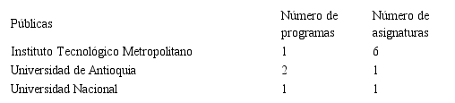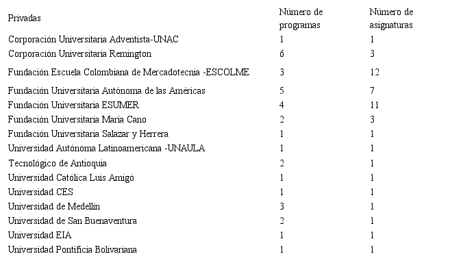 Atendiendo a consideraciones como el tipo de institución (privada y pública), el número de programas en administración que son impartidos en la ciudad de Medellín, así como la cantidad de asignaturas que en estos temas son cursadas por los estudiantes en sus mallas curriculares, es clara la diferencia en el énfasis, de acuerdo con el sector al que pertenecen, siendo las IES privadas las que más están alineando su oferta educativa a las imposiciones y demandas del entorno globalizado y competitivo de hoy.