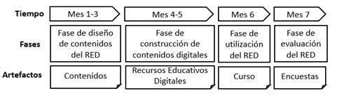 Fase de diseño de contenidos del RED: durante tres meses se desarrollaron los contenidos del RED.