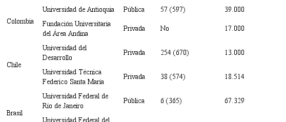 En función del objetivo definido, el método utilizado en este trabajo de investigación es inductivo, con un tratamiento de datos y un enfoque predominantemente cualitativo, pues parte de la base de información de universidades y experiencias reportadas por ellas en sus contextos. Se realizó un estudio exploratorio descriptivo no experimental para dar a conocer, en mayor medida, los conceptos en innovación social de las universidades que se encuentran en los países focalizados: Chile, Colombia, Brasil y Panamá; en particular, para este trabajo de investigación se eligieron ocho (8) universidades, dos (2) por cada país, procurando que una institución de educación superior -de cada país- tuviese mayor experiencia que la otra en apoyo a la innovación social; en la tabla 1 se muestran algunas características básicas de las mismas: