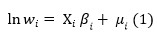 una distribución normal, con media cero y varianza . Para obtener el diferencial salarial, se descompone el logaritmo
