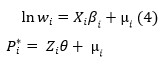 El primer término de la expresión es denominado características, y explica la diferencia salarial de acuerdo a las características productivas u observables. El segundo componente, es el efecto remuneración, el cual indica la proporción de la brecha salarial que se debe a las características no observables entre los individuos, siendo este componente el que evalúa la posible discriminación salarial. Los resultados en este tipo de regresiones tienden a estar sesgados porque no se incluyen elementos no observables, como las preferencias, habilidades, calidad en la educación y más. Es por esta razón que se incluye la probabilidad de emplearse, teniendo en cuenta un sistema de ecuaciones, donde: