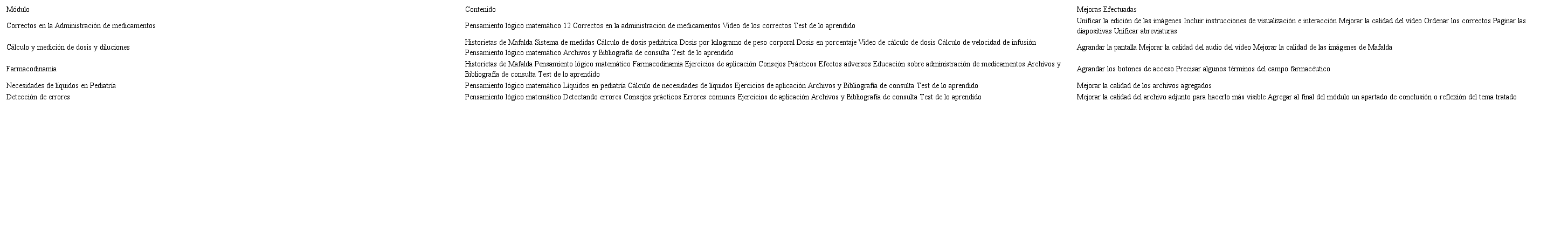 Los criterios con mayor debilidad fueron los técnicos; con el fin de perfeccionar la accesibilidad se realizaron modificaciones para mejorar la calidad de las imágenes, junto con el ajuste a los botones de acceso y el resto de aspectos sugeridos por los evaluadores. El criterio reusabilidad se optimizó al darle legibilidad a las imágenes y los archivos; con los videos se logró mayor resolución y se obtuvo el acceso en todos los navegadores de internet. En la tabla 4 se aprecian las mejoras realizadas a cada módulo del OVA.