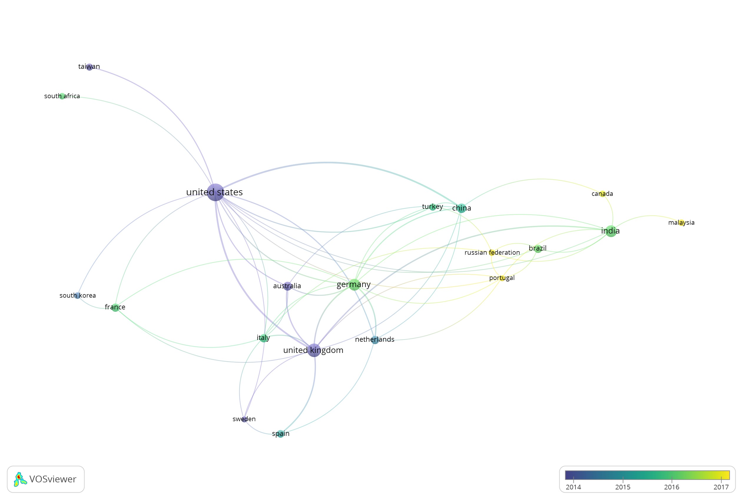 Entre las tendencias identificadas, se encuentran que, en la red de colaboración entre instituciones para la generación de conocimiento, se mantiene el liderazgo de las instituciones de educación superior del Reino Unido, Estados Unidos y Alemania, tanto en producción científica como en impacto. Además, estos países están iniciando colaboraciones científicas con países como India, Holanda, Italia, Emiratos Árabes Unidos, Rusia, Malasia e Indonesia.