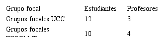 Los grupos focales se escogieron por medio de una muestra por oportunidad, a quienes quisieron participar como informantes de la investigación. En la tabla 1 se presenta la muestra que sirvió de fuente primaria para la investigación.