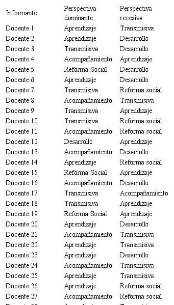 Todo lo expuesto, da a conocer cuáles son las perspectivas de enseñanza que tienen los docentes de matemáticas que participan en el estudio (ver tabla 3).