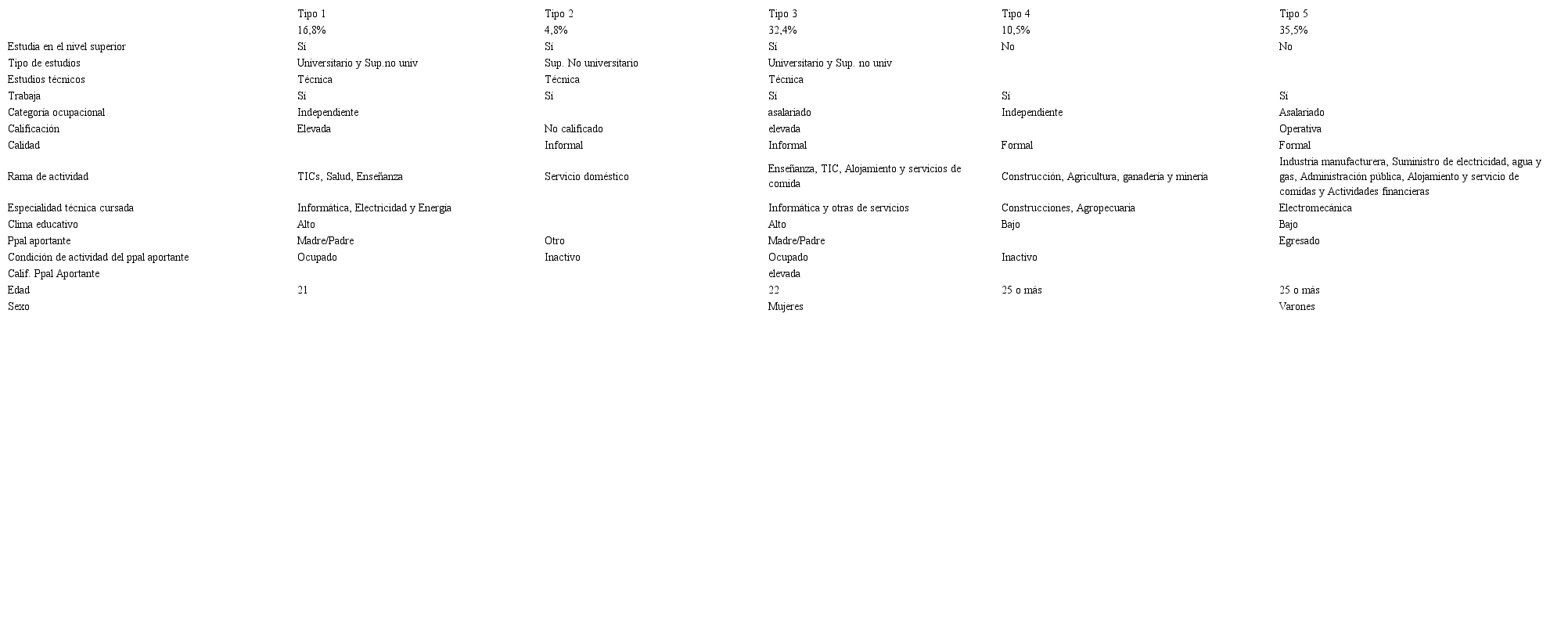 El Tipo 4 contiene el 10,5 % de los casos y está conformado por egresados ocupados que no realizan estudios en el nivel superior.