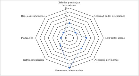 En esta perspectiva teórica, la clave del éxito en la educación a distancia, específicamente en la educación virtual, está en el desarrollo de la relación entre estudiante y profesor. De ahí que, para el caso concreto de la estrategia de formación Educar en la virtualidad, una enseñanza que deja huella, el rol del tutor y el manejo de los tiempos, actividades y procesos de acompañamiento haya tenido un lugar preponderante según las consideraciones de los participantes: “El proceso de retroalimentación por parte de los tutores fue un elemento clave para la comprensión de la ruta de formación, se resalta la pertinencia de los reflejos de los tutores a lo largo del proceso”