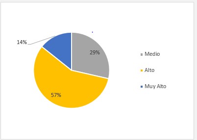 Todas las universidades que cuentan con un departamento de control interno -DCI- manifestaron que tienen objetivos establecidos, entre los cuales se destacan la eficacia y eficiencia de las operaciones, fiabilidad de la información financiera y cumplimiento de las leyes y normas aplicables al sector educativo, emitidas por el Gobierno. También, y en relación con la tercera pregunta que indagaba sobre el perfil profesional de los directores de control interno de las IES, la Figura 3 muestra que el 57 % de estas universidades tiene personas con un nivel alto de formación; un 29 %, un nivel medio; y el 14 % restante un nivel muy alto; no se presentaron personas con nivel de formación bajo. Asimismo, se resalta que el 67 % de las universidades cuenta con un grupo disciplinar de auditores, encargados de los controles en los procesos y el control interno en la universidad. Se destaca que el nivel de formación alto proviene de posgrados de las ciencias económicas y administrativas.