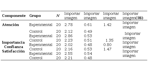 De manera similar, los resultados de la Tabla 5 indican que los valores promedios son más altos en el grupo experimental que en el grupo control para cada uno de los cuatro componentes.