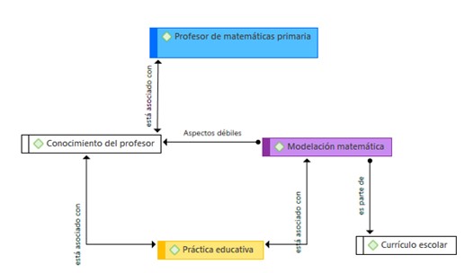 Por tanto y, de acuerdo con la literatura analizada, se reconoce que la implementación de la modelación en la enseñanza y aprendizaje de los estudiantes de básica primaria no es una tarea que se puede resolver de manera inmediata. Dada la relación que se deduce entre conocimiento del profesor y modelación (ver Figura 1), se reconoce que todavía persisten ciertos aspectos débiles en el conocimiento del profesor (Antonio et al., 2019) durante su práctica educativa, lo cual demanda compromiso y acompañamiento para que, de algún modo, logre superar las barreras que le impiden la implementación de la modelación en su práctica.